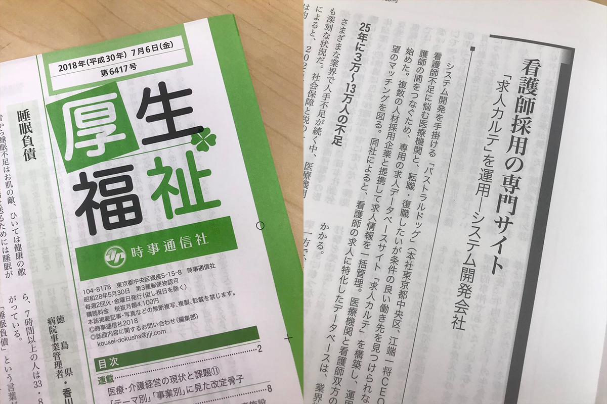 時事通信社発行の医療系専門誌「厚生福祉」2017年7月6日号にて「求人カルテ」を掲載いただきました。